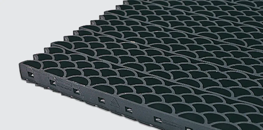 Hvis mange ringgummimatter skal settes sammen, kan det være nødvendig med klips. Angi alltid mål A = bredde og mål B = ganglengde ved spesifikasjon eller bestilling.