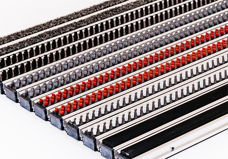 Sätt färg på tillvaron med Kåbe CoroTec – inom- och utomhusmattan där du själv kan kombinera skrapborstar, textillister, borstlister och gummilister i många olika färgkombinationer.