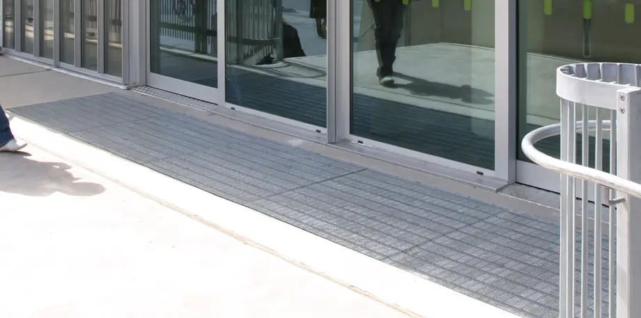 Skrapgaller i varmförzinkat stål med plattstänger i båda riktningarna. Gallret har en mycket god genomsläpplighet av smuts. Använd den som den är, eller ta det ett steg högre och komplettera gallret med justerbara ben – perfekt för entréer med höjdskillnad.