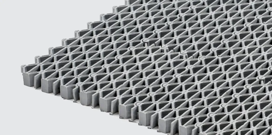 Kåbe Prima har ett triangulärt mönster som effektivt torkar smutsen från skosulorna och passar bra i områden med hög trafik såsom varuhus, sjukhus och flygplatser. Mattan har en öppen konstruktion med dränerande baksida för vattenavrinning och kan kombineras i olika färger och mönster. Entrémattan levereras monterad eller i lösa moduler efter önskemål. Kåbe Prima är tillverkad av brandsäkert material som är helt återvinningsbart.