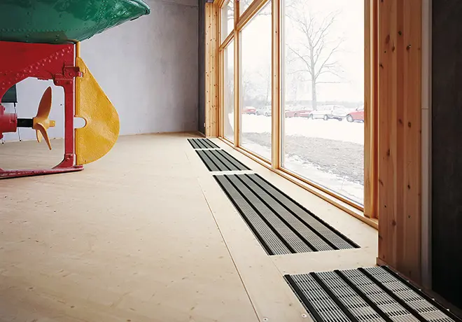 Golvgaller för konvektion, avrinning och smutsinsamling