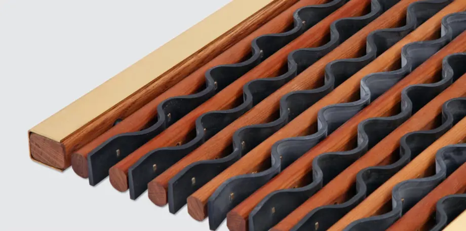 Kåbe Eko är en entrématta för entréer med krav på god estetik i kombination med god funktion. Mattan är en modern tolkning av ursprungsmodellen Kåbemattan från 1940-talet, med en tålig uppbyggnad av trästavar och gummilist. Entrémattan finns med både svart (Originalmattan), rött (Kulör) och grått (Kulör) gummi och kan fås med mässingslist monterad på ändprofilen. Kåbe Eko är 100 % återvinningsbar, rullbar och passar för användning inomhus.