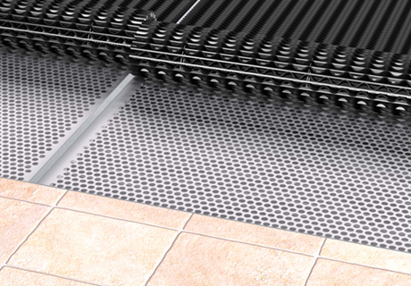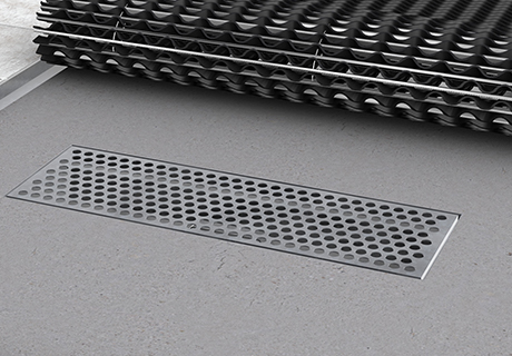 Fribärande varmförzinkat öppet stålunderrede till Kåbe Originalmatta. Används för att få en självstädande funktion då smutsen från skorna faller igenom både matta och avloppsgaller ner i en djupare försänkning.