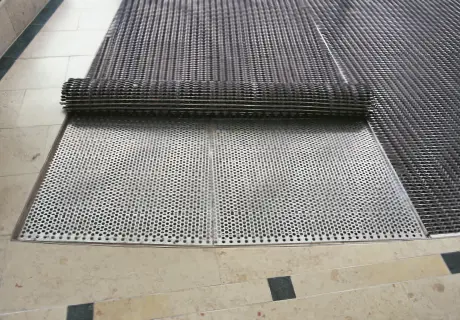 Gallerdurk med påsvetsad perforerad plåt. Fungerar som plant och fast underlag utan att skada mattan, och som fläns mot upplagskant. Kantskoning i försänkning ska hålla ett invändigt höjdmått på 25 mm.