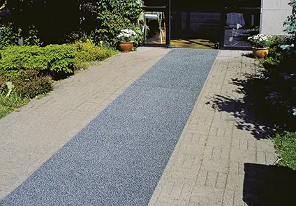 Astro Turf är den klassiska “gräsmattan” med kraftiga piggar som effektivt skrapar bort smutsen från skorna. Plastmattan är tillverkad av polyeten. Mattan har en gummerad glasfiberförstärkt baksida som gör att mattan ligger still och är lämplig för användning inomhus i de lite mindre frekventerade entréerna. Då Astro Turf har en låg vikt rekommenderar vi att mattan försänks i golvet eller placeras i en Kåbe mattramp typ 2 för att undvika snubbelrisk.
